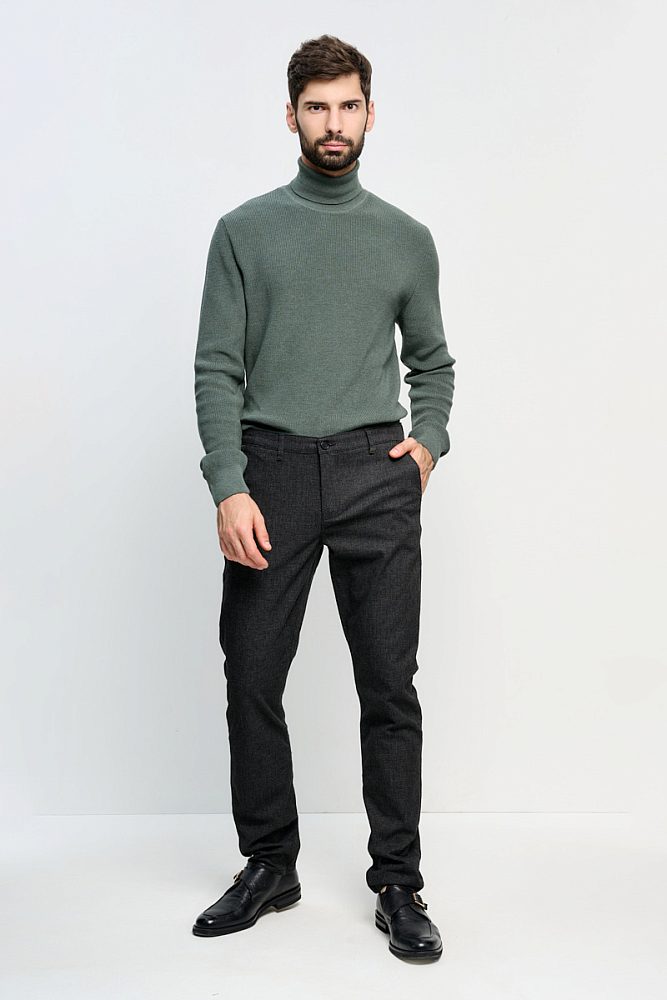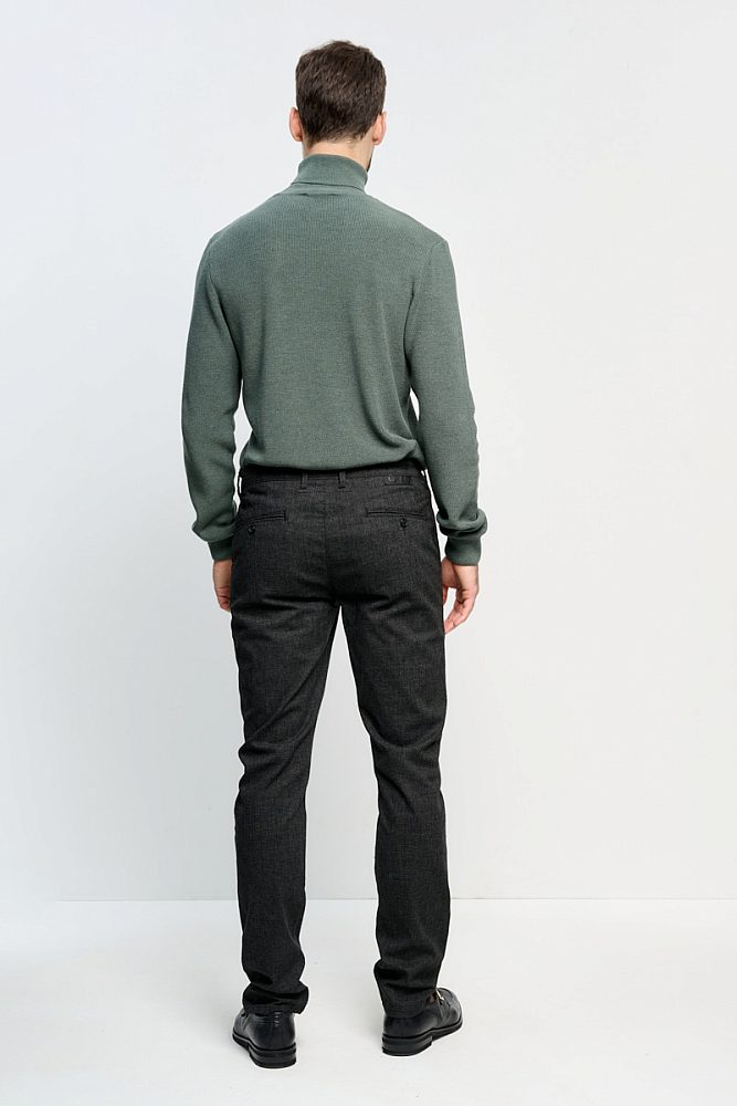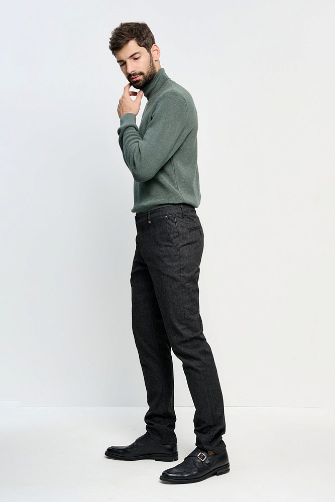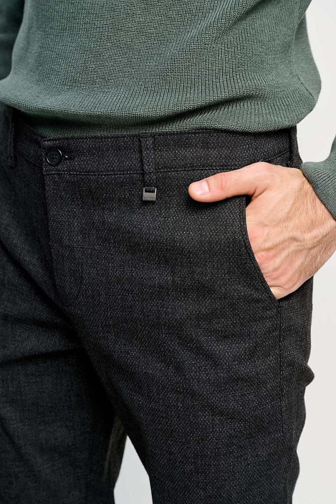 Брюки slim fit в стиле смарт-кэжуал в меру облегающие идеальны для стильного и повседневного образа. Тёмно-угольный цвет отлично сочетается с любой одеждой. Такие брюки станут незаменимой базовой вещью в мужском гардеробе и основой полуформальных и деловых аутфитов.
