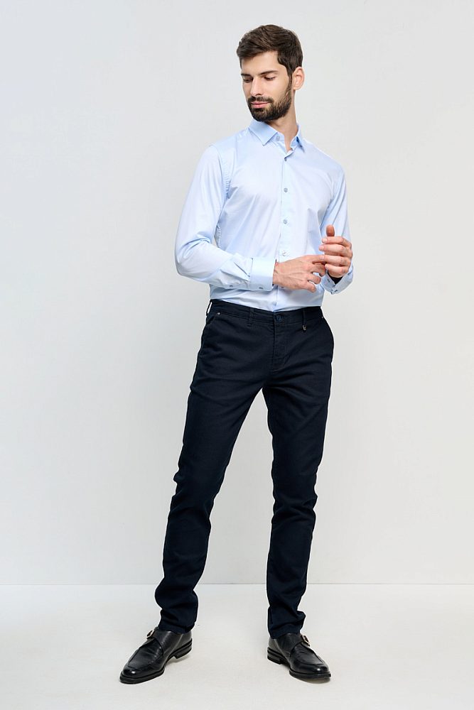 Облегающие брюки из плотного хлопка со средней посадкой подходят как для деловых встреч, так и для отдыха. Акцентные детали на шлевке и боковом шве помогут создать запоминающийся образ в стиле смарт-кэжуал.