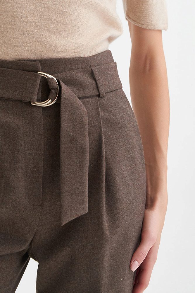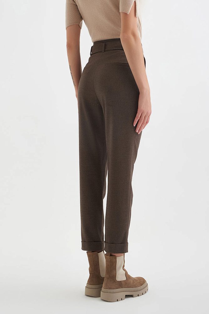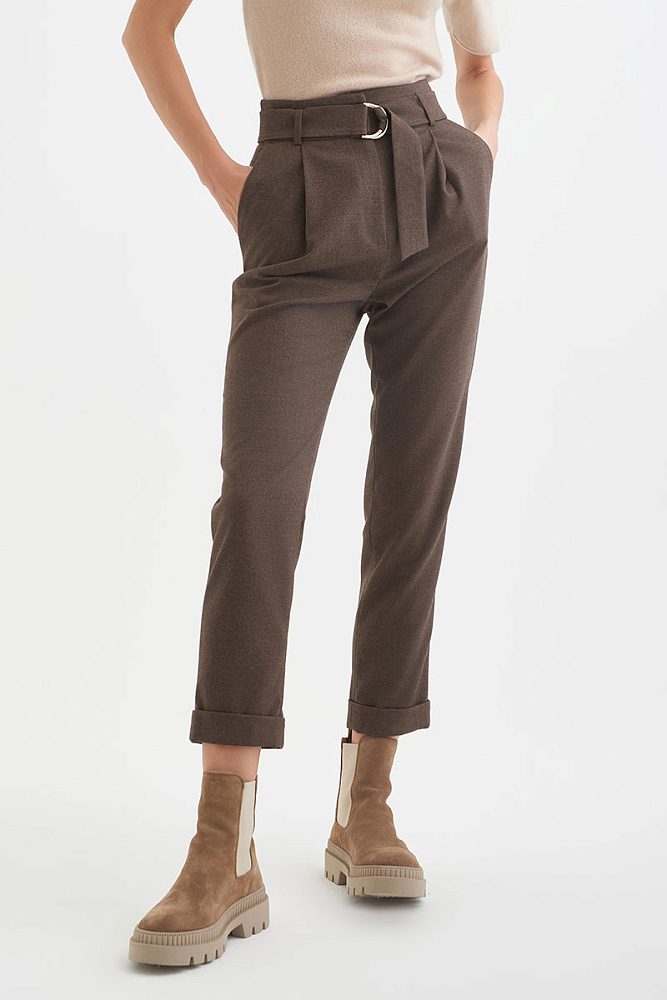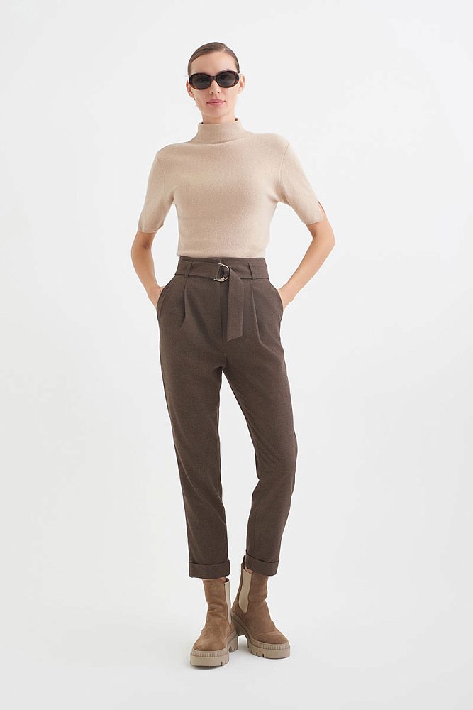 Трендовые женские брюки-бойфренды высокой посадки гармонично дополнят как строгий образ, так и расслабленный повседневный аутфит. Для удобства предусмотрены прорезные карманы и застежка на молнии.
