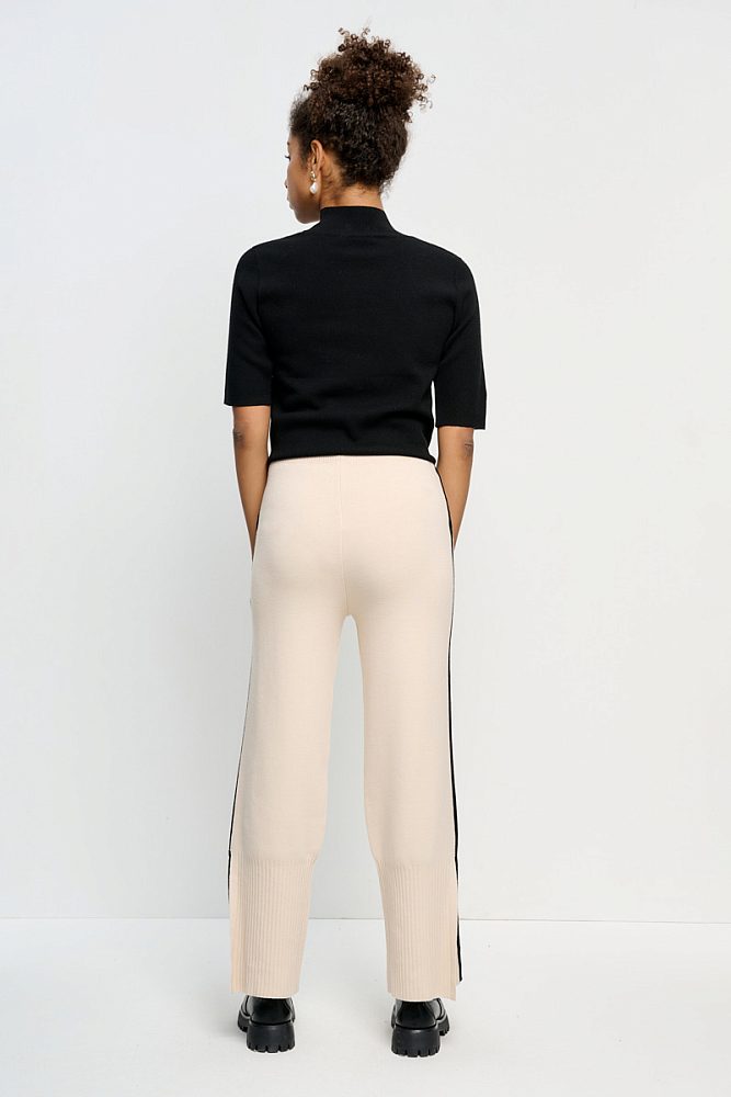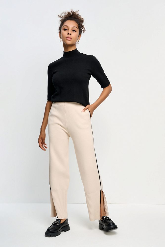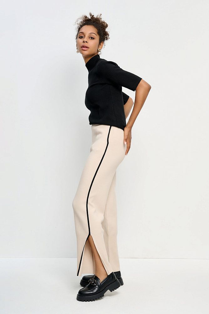 Брюки прямого кроя на мягком поясе дополнены самой хитовой деталью сезона 2023/24 – лампасами. Акцентная деталь безупречно встроена в крой прорезных карманов, а, главное, визуально удлиняет рост и придает плавности линиям силуэта. Смесовая ткань с высоким содержанием органического хлопка в составе изделия обеспечивает безупречную посадку по фигуре.