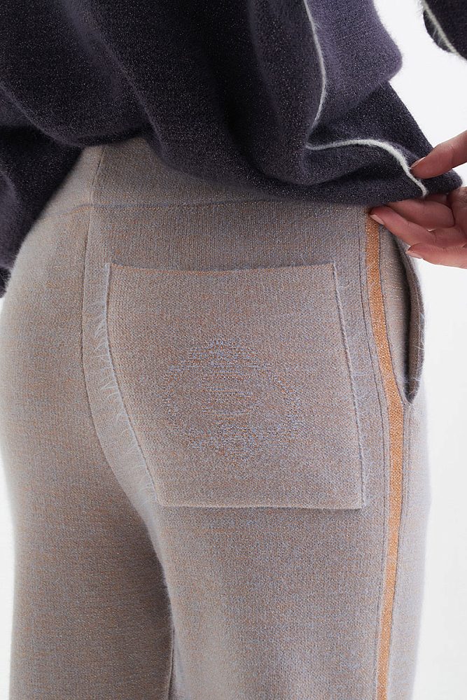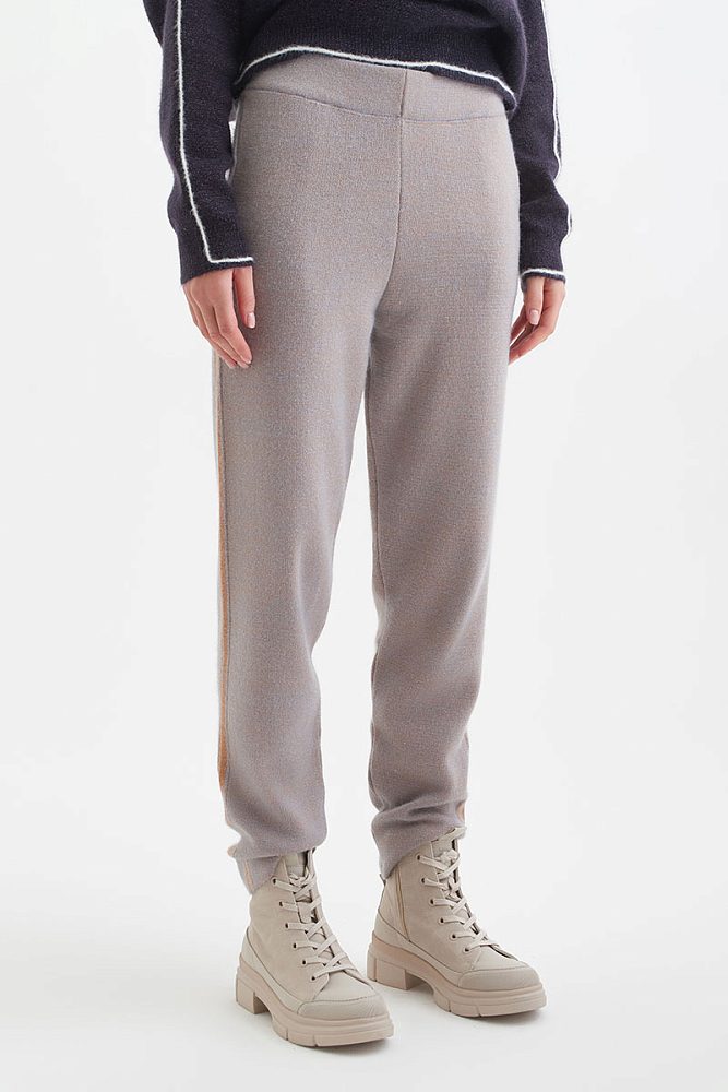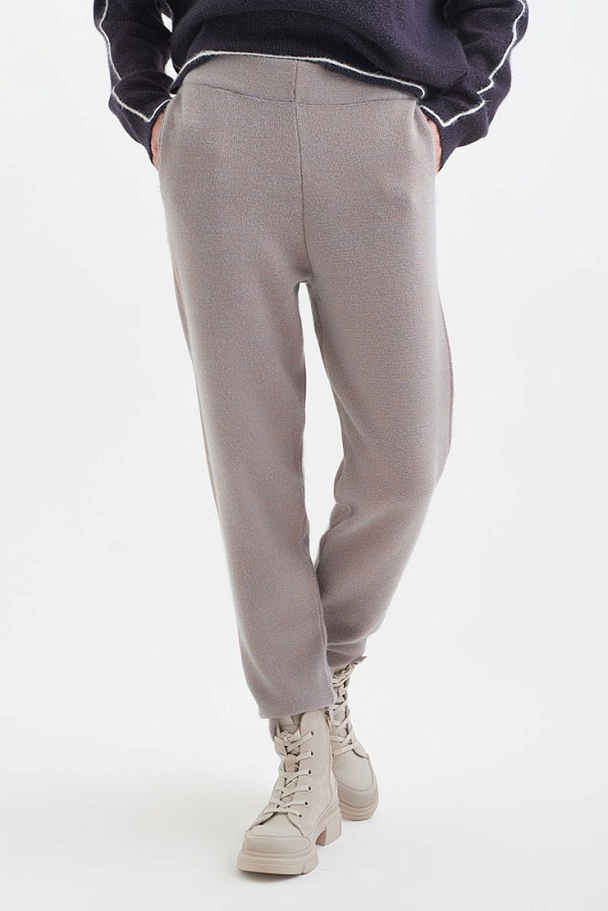 Серо-бежевые брюки прямого кроя для образов в стиле кэжуал или спорт-шик. Высокая посадка с широкой резинкой на талии делают брюки удобными для повседневного выбора. Стильный look идеально дополнят худи или свитер оверсайз с воротником-стойкой.