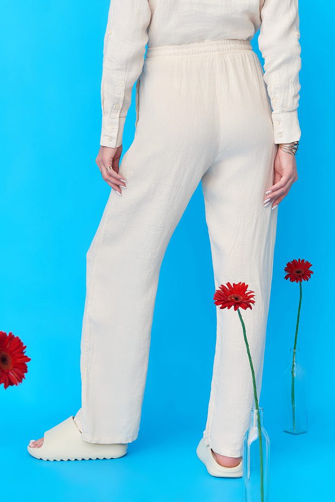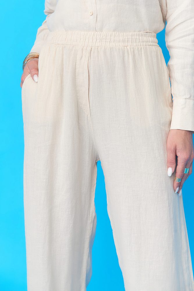 Обновите свой гардероб этими льняными брюками с высокой посадкой. Изготовленные из легкой ткани, они имеют светло-бежевый оттенок и придают современный вид. Индивидуальный крой и удобный пояс на резинке делают их идеальными для любого случая.