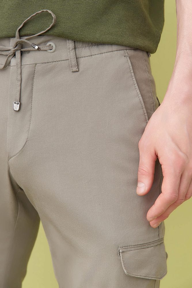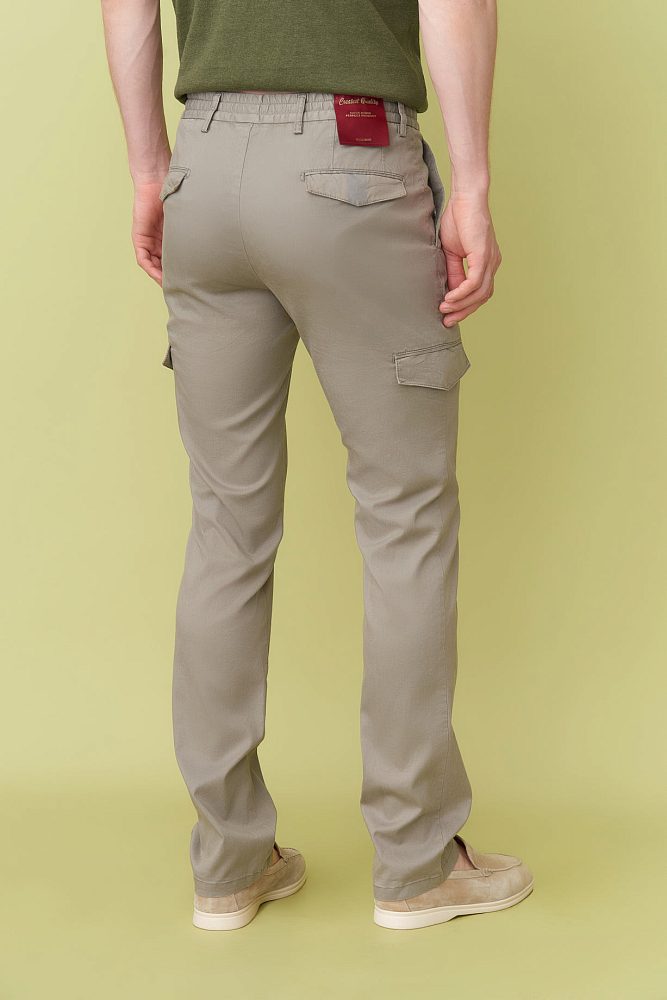 Стильные мужские брюки с накладными карманами, изготовленные из смеси тенсела и хлопка, обязательно выделят вас своим западным стилем. Бежевый цвет придает классическую атмосферу, а длина придает дополнительный стиль.