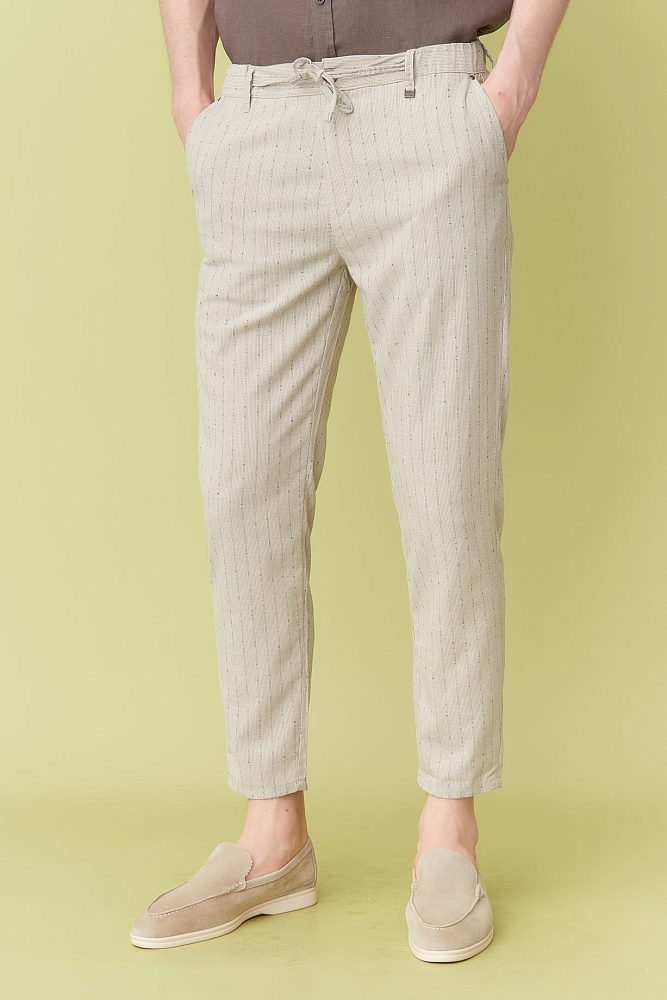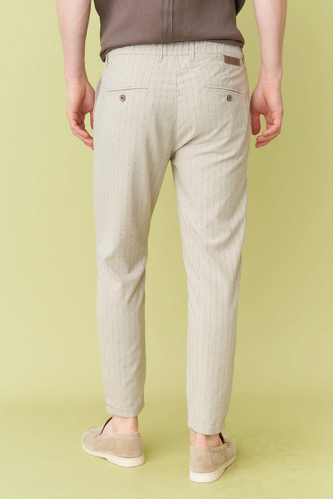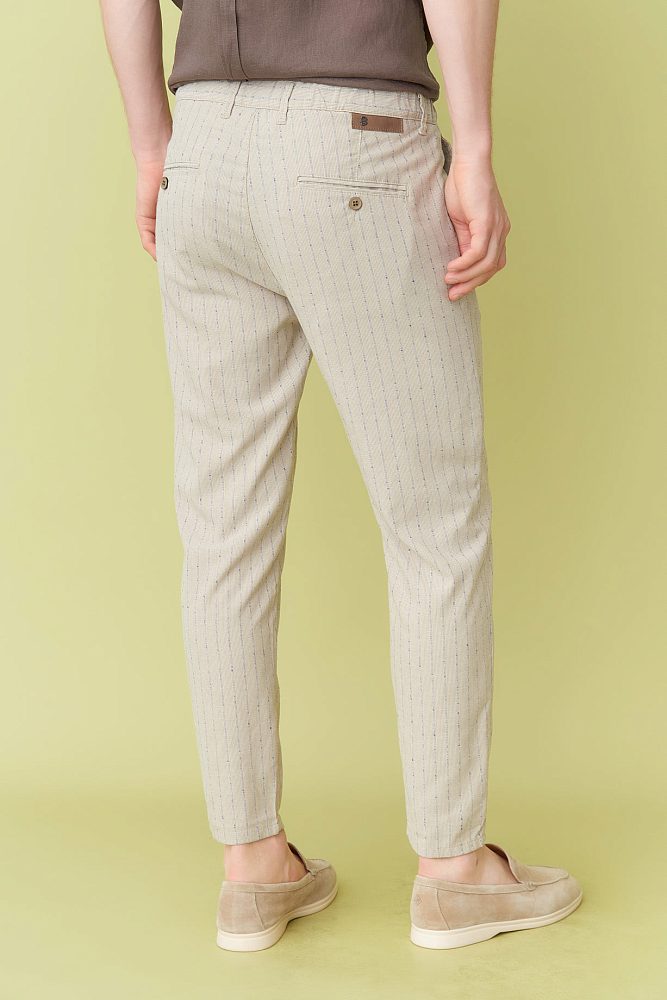 Обновите свой гардероб этими стильными и утонченными бежевыми брюками. Изготовленные из высококачественной ткани, они украшены тонкими полосками и крафтовыми пуговицами на задних карманах, которые придают изысканность любому образу. Идеально подходящие для любых официальных мероприятий, эти брюки помогут вам выглядеть идеально!