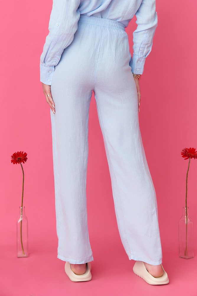 Обновите свой гардероб этими льняными брюками с высокой посадкой. Изготовленные из легкой ткани, они имеют светло-голубой оттенок и придают современный вид. Индивидуальный крой и удобный пояс на резинке делают их идеальными для любого случая.
