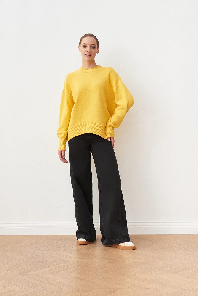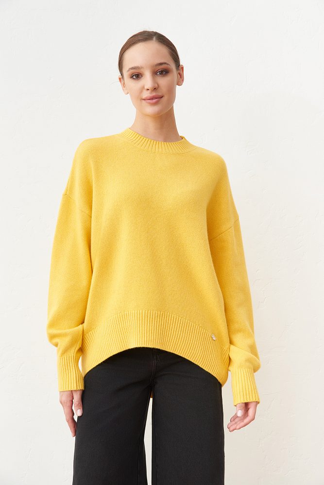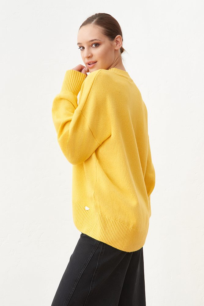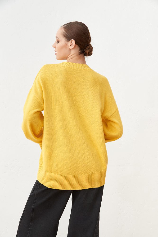 Джемпер асимметричного кроя в кремовом оттенке выполнен из органического хлопка и нежной шерсти, обеспечивающей тепло и комфорт. Модель прямого силуэта, среднего объема, со спущенной линией плеча, V-образной горловиной и длинным втачным рукавом. Легко сочетается со всеми вещами в гардеробе и и дополнит городской образ любой сложности.