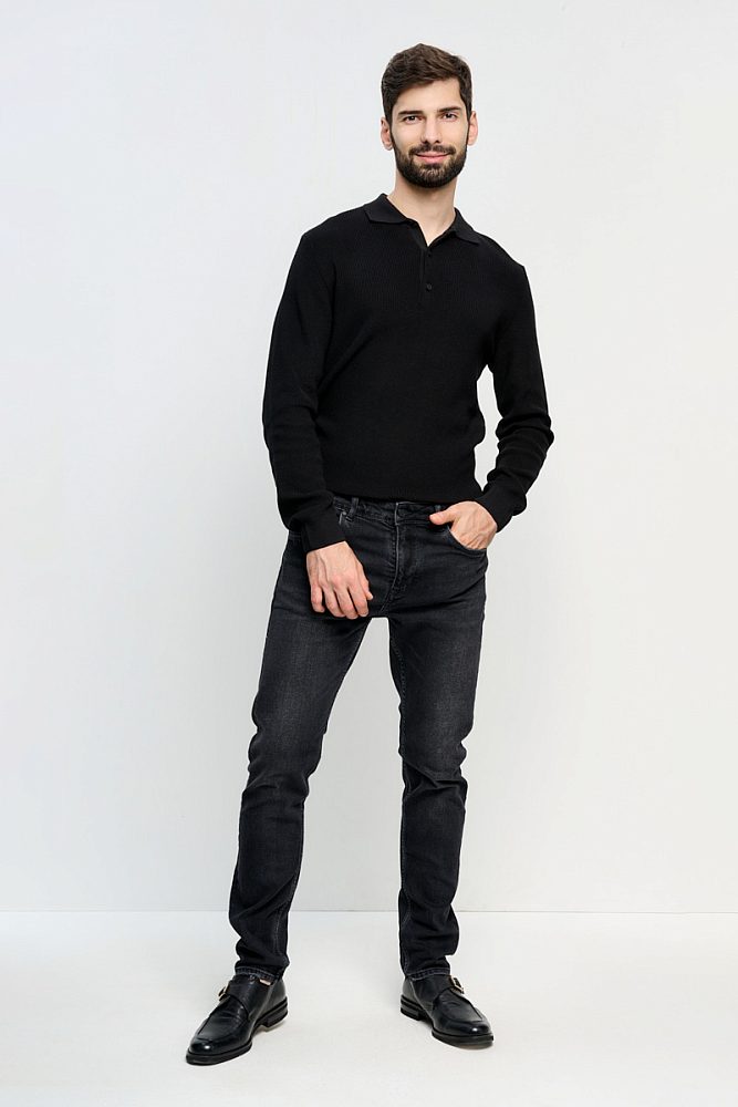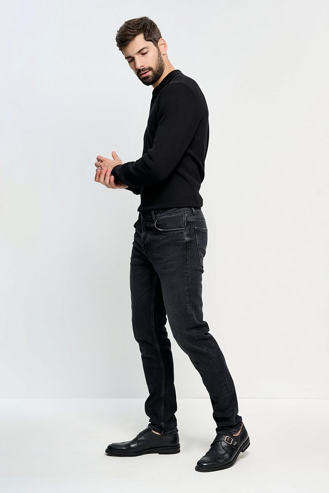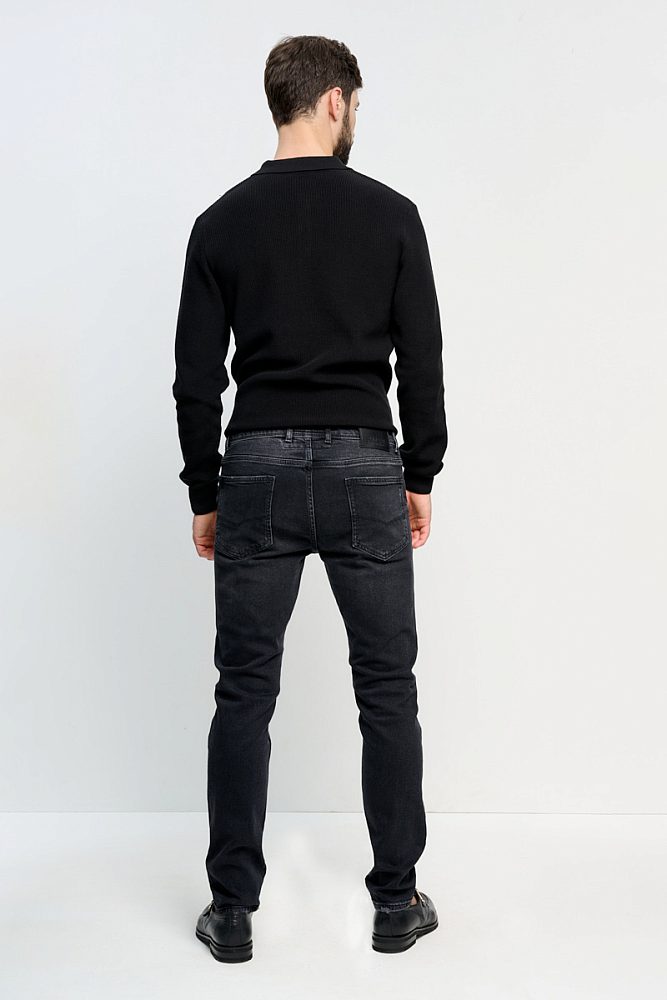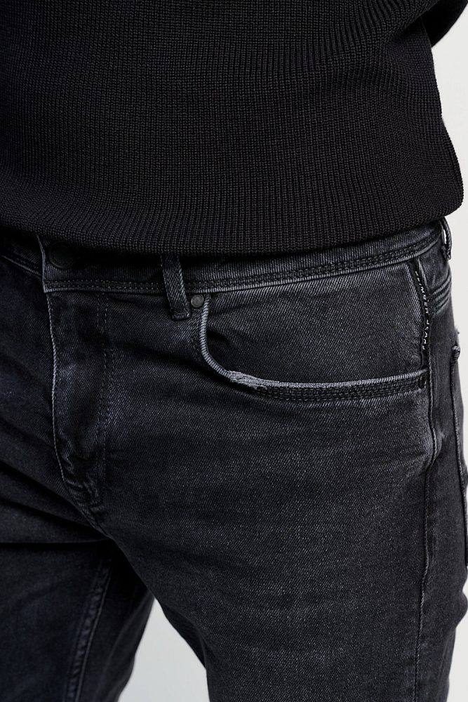Черные джинсы со средней посадкой из плотного хлопка. Легкие потертости на швах помогут создать дерзкий образ в стиле гранж или расслабленный повседневный образ в стиле смарт-кэжуал.