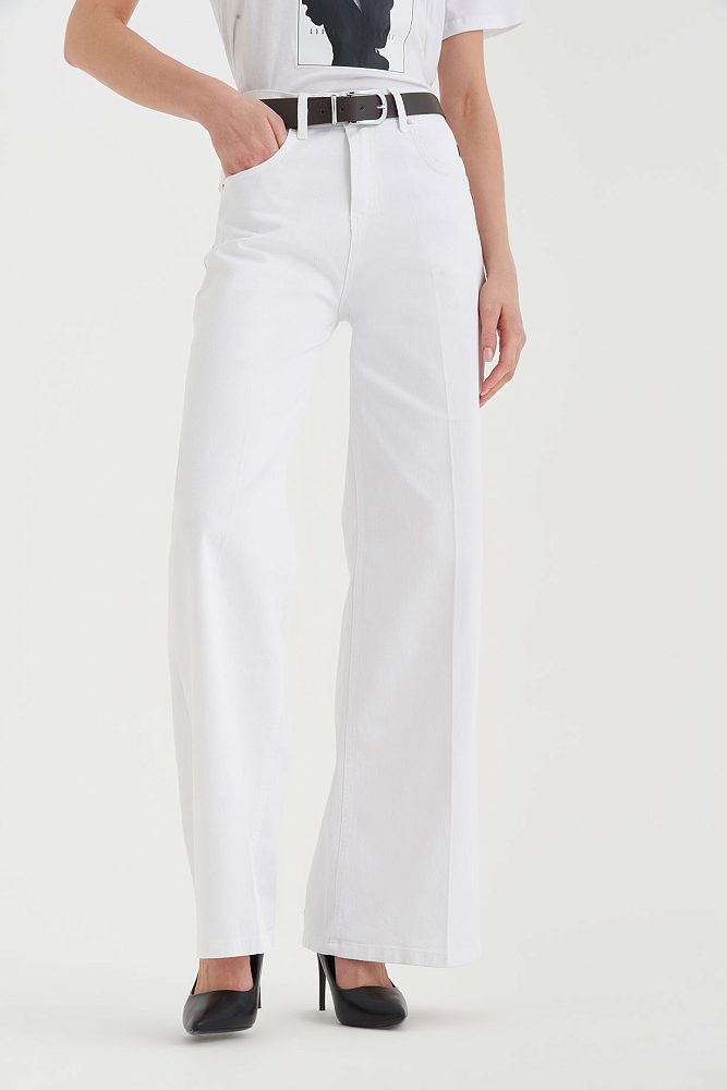 Клеш от бедра, высокая посадка и костюмные стрелки — рецепт идеальных трендовых джинсов. Плотный хлопок и комфортная посадка сделают эту модель незаменимой в ваших повседневных аутфитах.