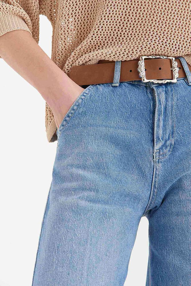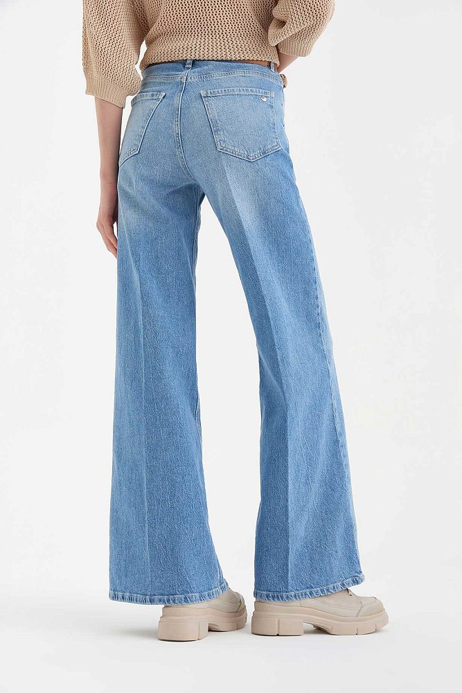 Эффектная, расширяющаяся к низу модель, выполненная в эстетике 70-х годов или всем известные джинсы клёш — настоящий хит нашей новой весенней коллекции. Эта пара хорошо смотрится вместе с массивными кроссовками и обувью на платформе, а классический голубой цвет гармонирует с белыми рубашками и ярким трикотажем.