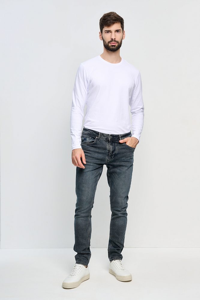 Тёмно-синие свободно сидящие джинсы органично смотрятся не только в стиле спорт и спорт-шик, но и станут допустимым вариантом для офисного аутфита без строго дресс-кода. Джинсы сочетаются с широким ассортиментом обуви: с казаками с голенищем до середины икры, чёрными кожаными брогами, замшевыми топ-сайдерами и мокасинами. Чтобы создать запоминающийся образ, можно дополнить его клетчатой рубашкой или пальто прямого кроя для прохладной погоды.