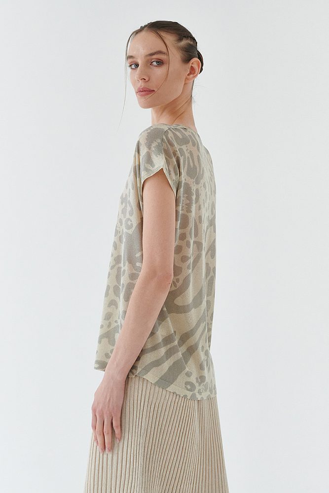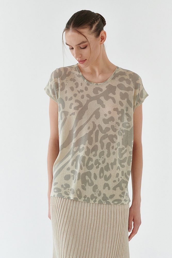 Удлиненная футболка свободного силуэта для лёгких весенне-летних аутфитов. Анималистичный принт остается актуальным и в новом сезоне, поэтому смело добавляйте его в свой гардероб. Состав ткани продуман до мелочей, благодаря этому летом в футболке не жарко, а в прохладную погоду максимально комфортно, если дополнить модель кардиганом или джемпером.