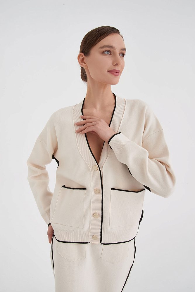 Утонченный кардиган на пуговицах с контрастной отделкой — отличный вариант для повседневного, делового и вечернего выхода. Идеальный крой, приятная дышащая ткань, совершенство мельчайших деталей — с брендом Serianno вам не придется выбирать между комфортом и элегантностью.