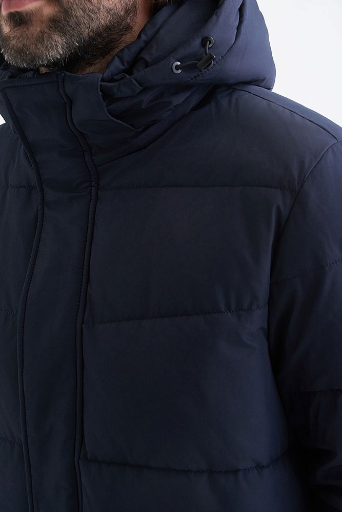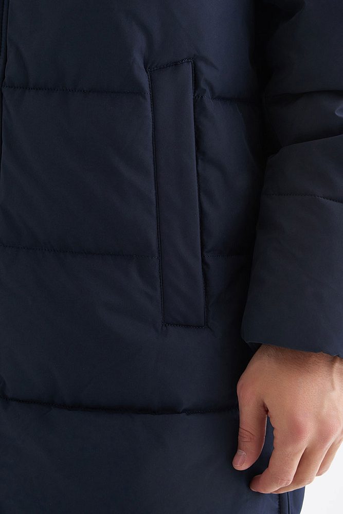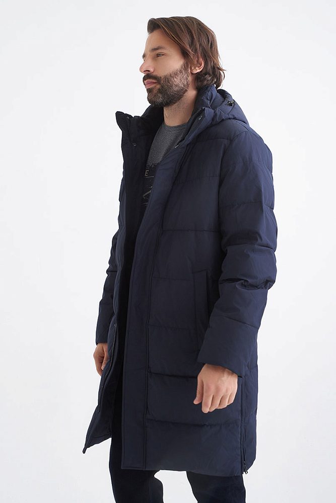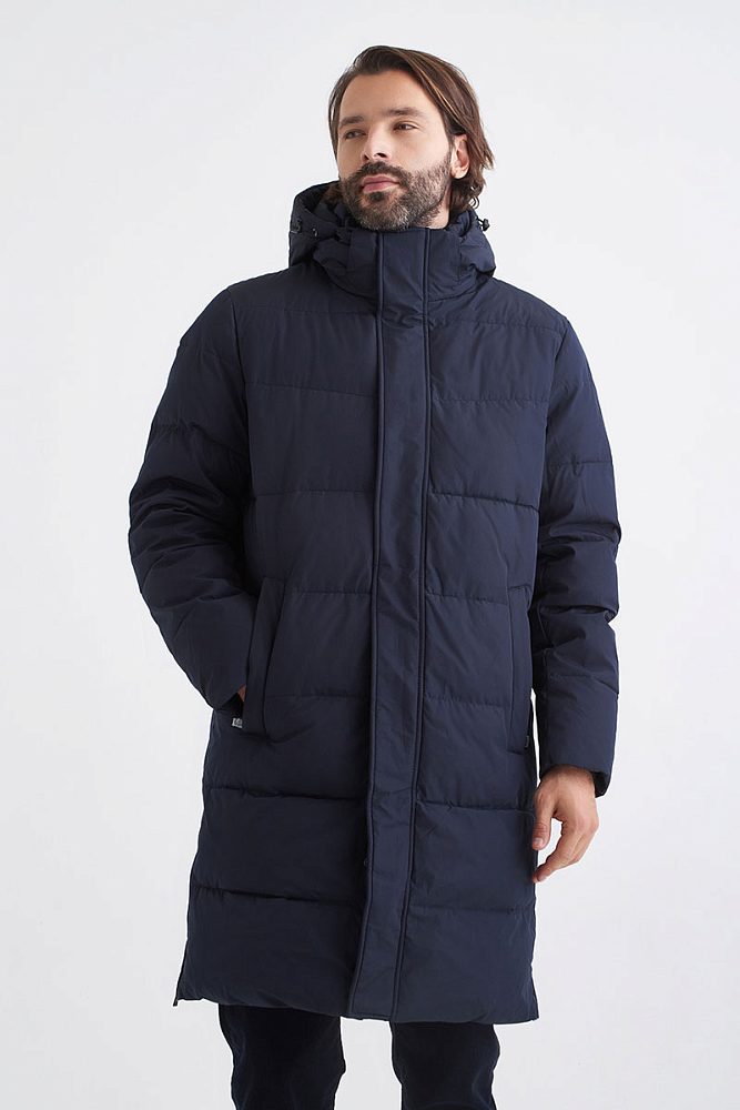 Длинная куртка на молнии с капюшоном, высоким воротником и удобными карманами. Прочный долговечный лавсан почти не мнется и обладает водоотталкивающими свойствами. Практичная длина, чтобы носить поверх пиджака или худи.