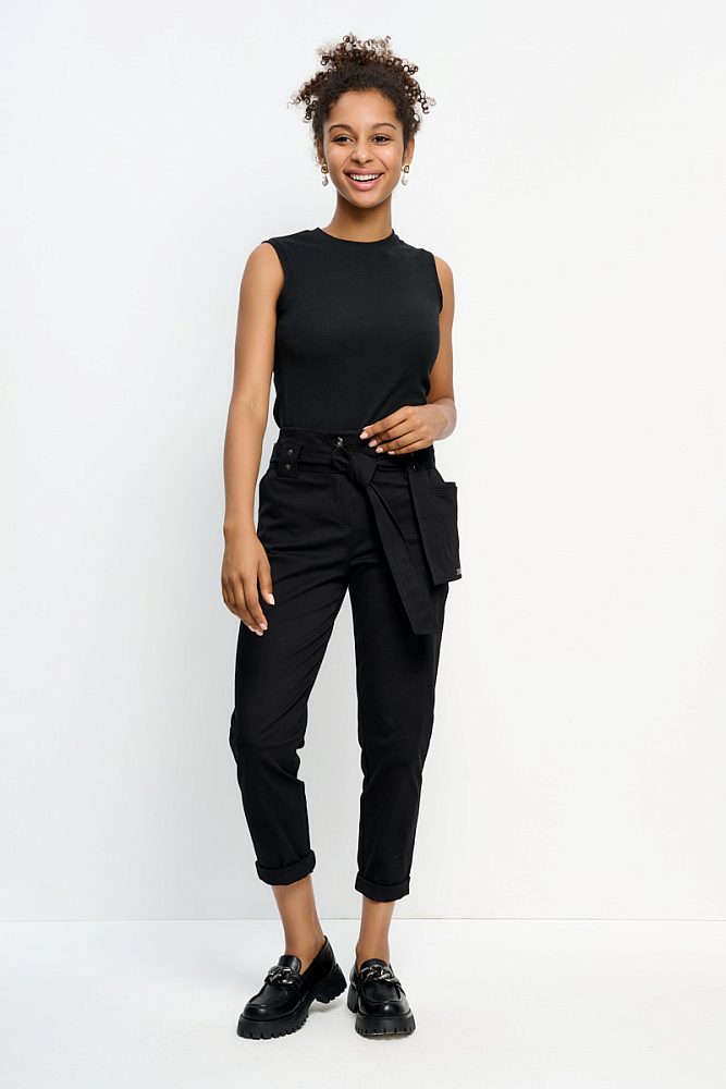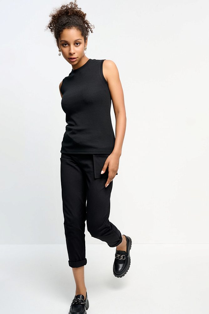 Майка из вязаного трикотажа, в составе которого 100% акрил, пригодится в деловом образе, если в офисе достаточно тепло: накиньте её поверх блузы. Также майку можно носить как самостоятельный элемент гардероба, сочетая с укороченными брюками.