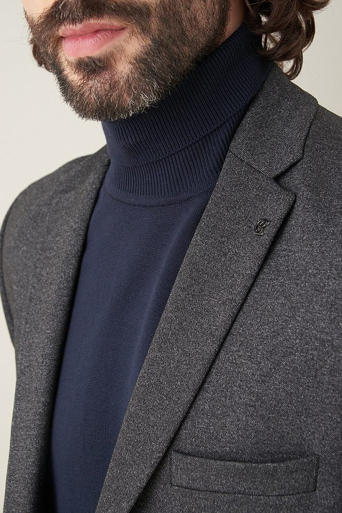 Однобортный приталенный пиджак на пуговицах с английским воротником и накладными карманами. Модель декорирована брошью для создания ярких образов в стиле смарт-кэжуал.