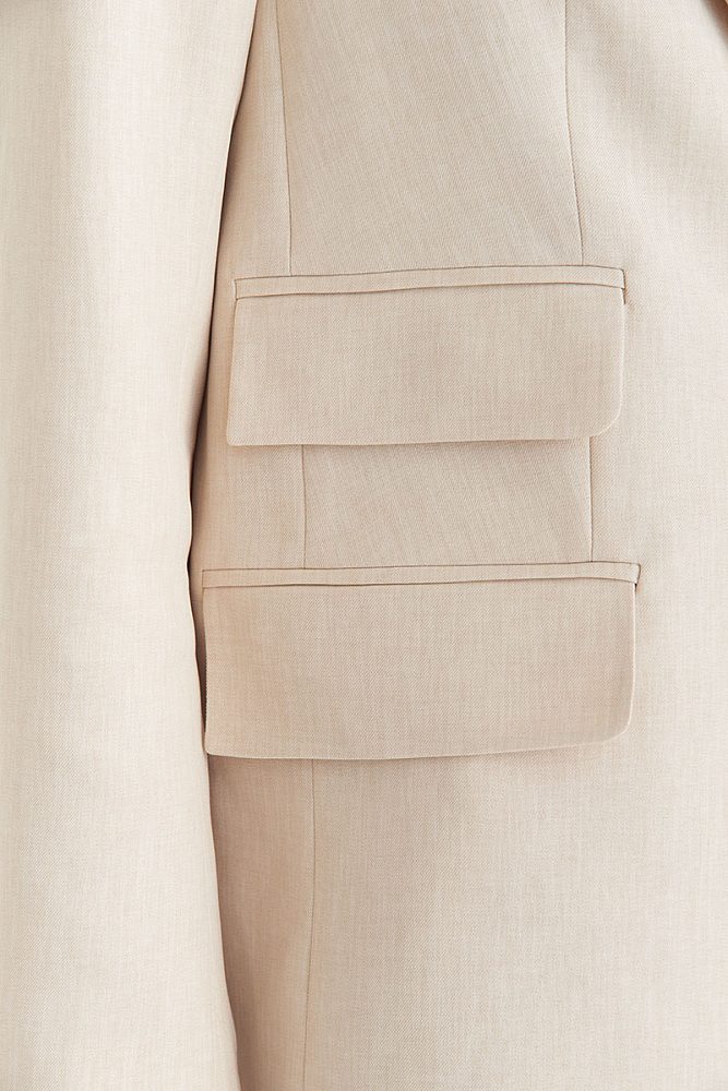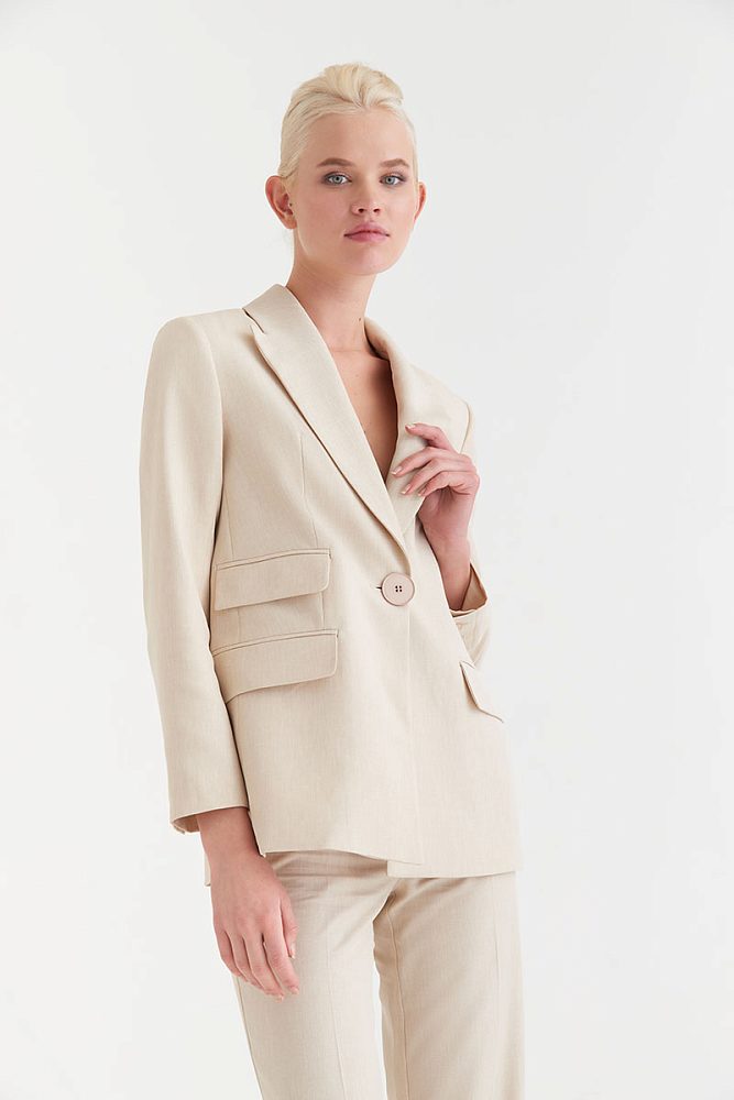 Эта модель костюма привлекает внимание деталями: необычные декоративные карманы, пуговицы на брюках и спинке жакета способны вызвать истинное восхищение. Завершающий штрих комплекта — это оттенки: просто выберите свой идеальный цвет.