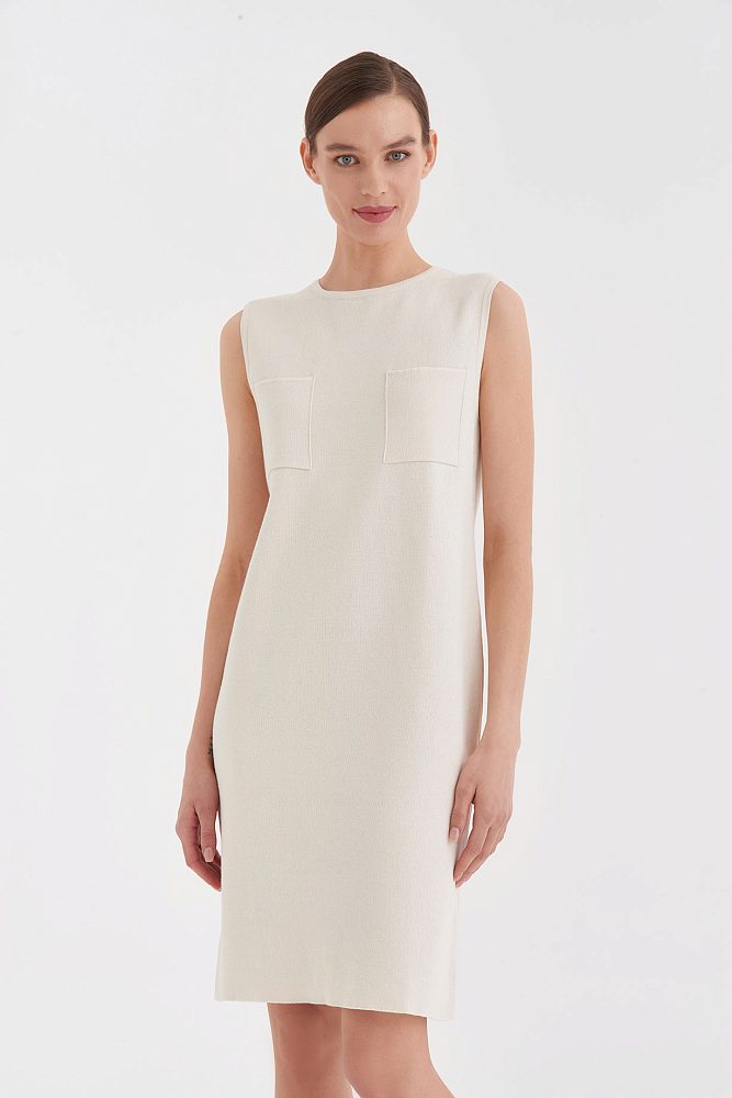 Безупречное базовое платье в оттенке айвори с декоративными карманами на груди. Длина модели чуть выше колена подчеркнет красоту ваших ног. Сделайте свой образ еще нежнее, дополнив платье нюдовыми босоножками и светлым кардиганом. Или добавьте в свой аутфит яркие туфли и дерзкую косуху — это платье позволит вам все.