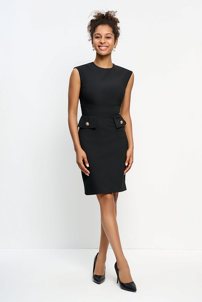 Стильное короткое платье полуприлегающего силуэта в базовом цвете — многофункциональный элемент женского гардероба благодаря своей вариативности. Его можно носить с пиджаком или джемпером, самостоятельно или поверх рубашки с длинным рукавом. Ткань приятна к телу и не вызывает дискомфорта в носке.