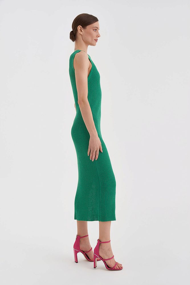 Эффектное платье-миди от бренда Serianno подчеркнет изгибы вашей фигуры и подарит восхищенные взгляды окружающих. Модель выполнена из приятной на ощупь ткани в рубчик и декорирована акцентной деталью на спине. Платье универсально, вы можете вписать его в практически в любой образ.