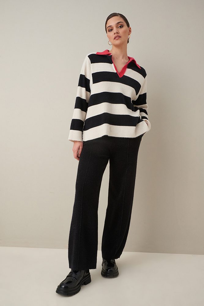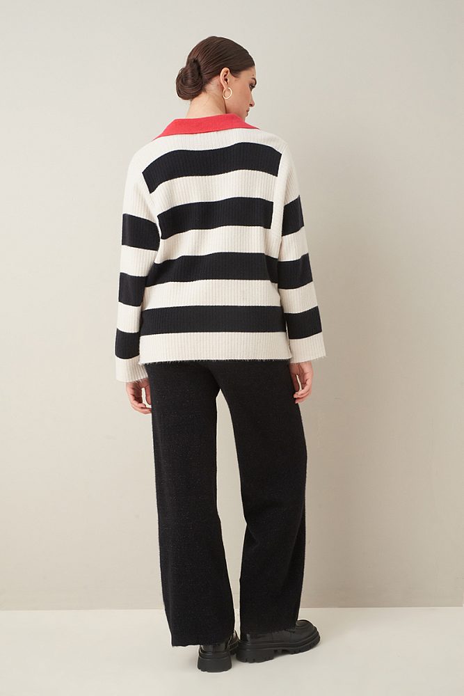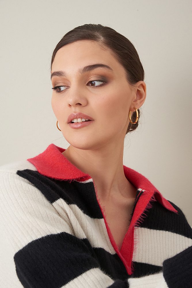 Объемный пуловер с контрастным воротником