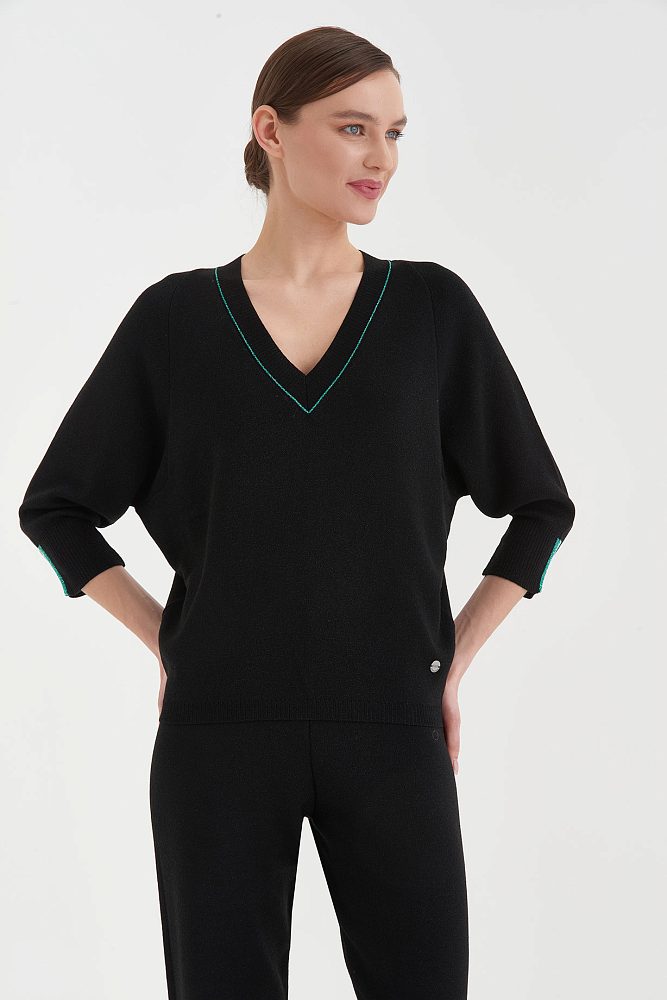 Создавайте расслабленные образы с пуловером из акрила. Базовый оттенок, свободный крой, акцентные бирюзовые вставки, рукав 3/4, приятная тактильность — пуловер просто создан для весенних аутфитов на прогулку, для повседневной носки и активного отдыха.