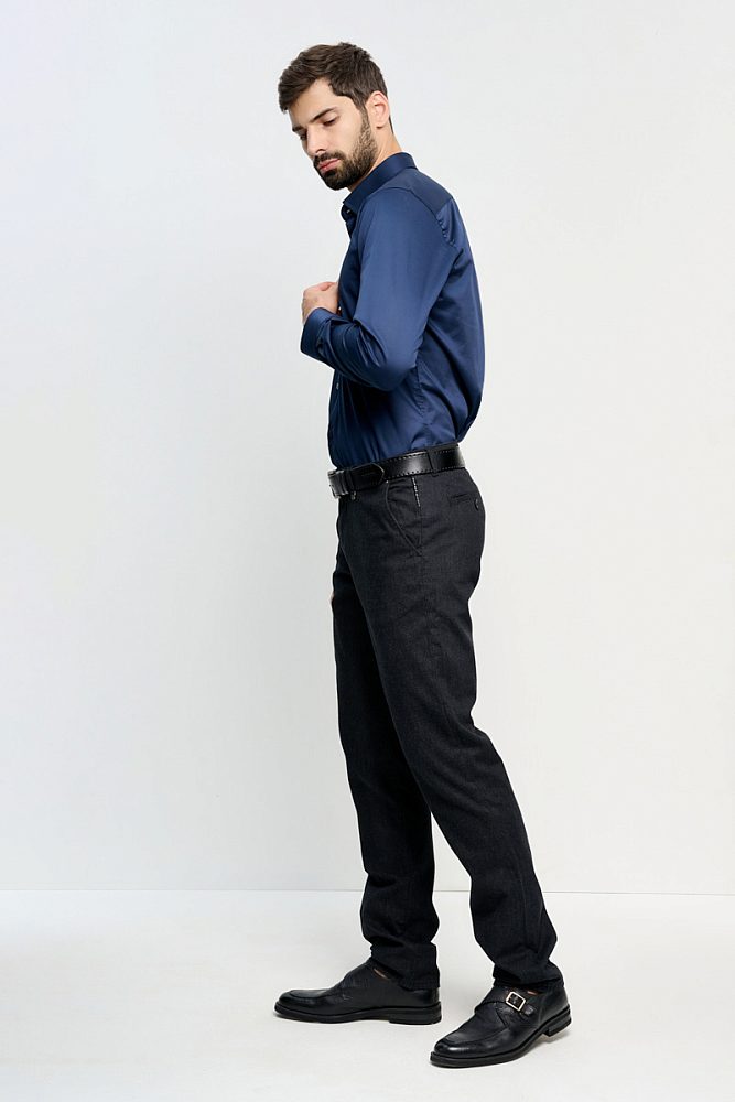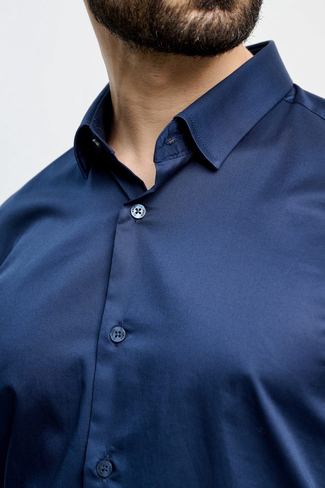 Полуприлегающая хлопковая рубашка на пуговицах. Однотонная ткань выглядит дорого и позволяет включить модель в комплекты в стиле смарт-кэжуал, а также в классические деловые образы.