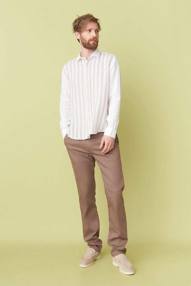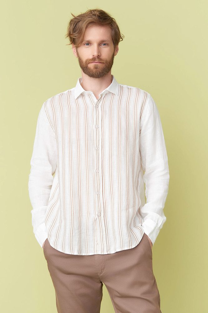 Выглядите элегантно и стильно в нашей новой мужской рубашке. Ткань, изготовленная из легкой смеси 70% хлопка и 30% льна, украшена тонкими вертикальными полосами разной толщины, придающими изделию современный вид, обеспечивает максимальный комфорт и воздухопроницаемость. Наслаждайтесь классическим итальянским воротником для изысканного образа, который обязательно привлечет внимание.