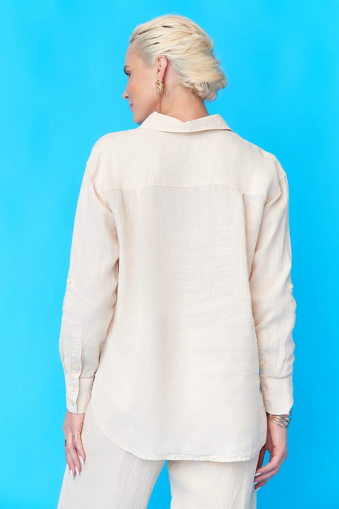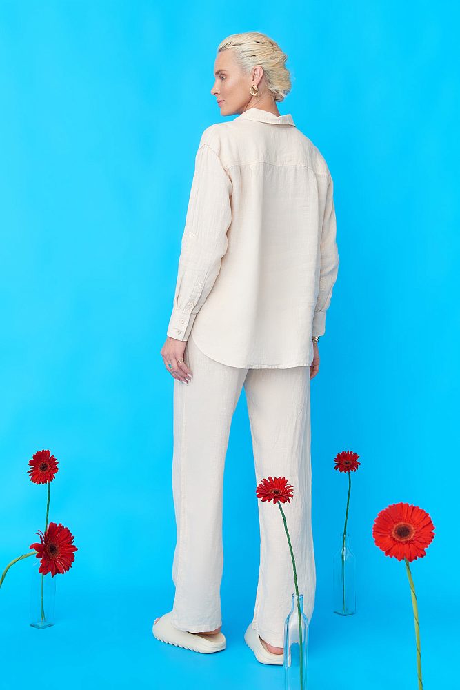 Выбери стильную рубашку из 100% льна! Она идеально подходит для лета, обеспечивая прохладу и комфорт в течение всего дня. А удлиненная спинка придает стильный штрих любому образу. Приготовьтесь привлекать к себе внимание этим потрясающим произведением искусства — вы обязательно сделаете заявление!