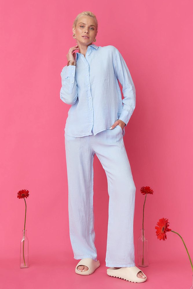 Мягкая и удобная светло-голубая льняная рубашка подойдет для любого случая. Дышащая ткань, приятная на ощупь, обеспечивает прохладу и комфорт в течение всего дня. Классический дизайн в современной интерпретации идеально подходит для любого гардероба.
