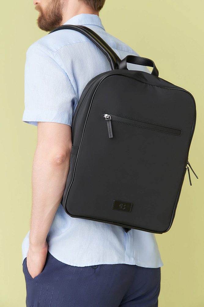 Приготовьтесь заявить о себе с этим мужским рюкзаком. Он имеет черную прямоугольную форму, акцентный прорезной карман и сочетание нескольких текстур для создания уникального образа. Возьмите его с собой на работу или в следующее путешествие. Благодаря элегантному дизайну и прочной конструкции эта сумка обязательно привлечет внимание, куда бы вы ни отправились.