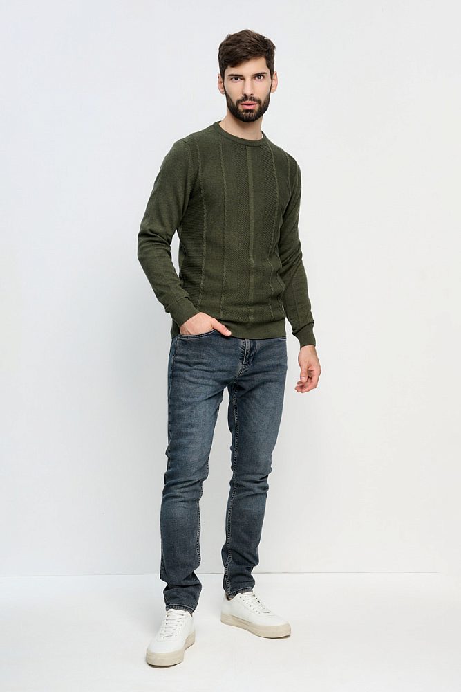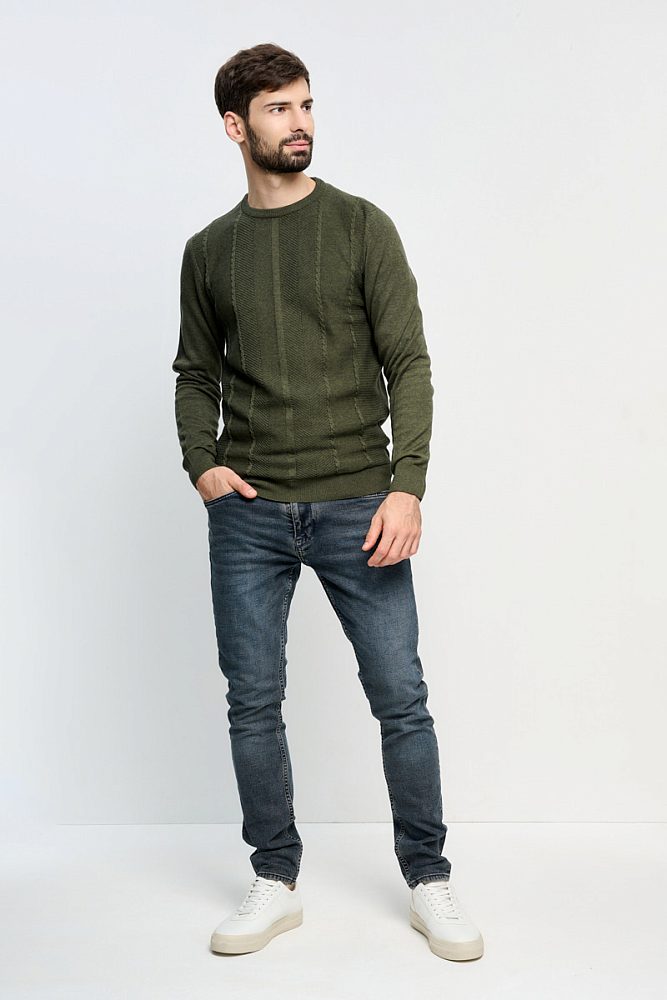 Полуприлегающий свитер с длинными рукавами и круглым вырезом идеален для образов как в классическом стиле, так и в стилях кэжуал и смарт-кэжуал. Ткань из хлопка и акрила хорошо сохраняет тепло и приятна к телу. Однотонная модель декорирована фактурной продольной вязкой.