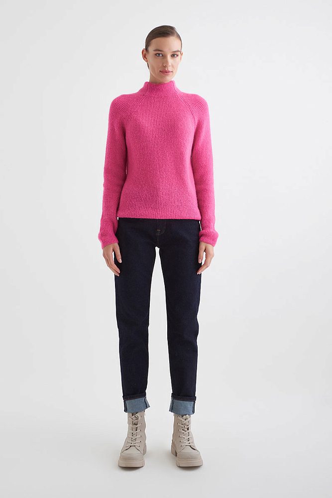 Уютный джемпер прямого кроя в фактурный мелкий рубчик — модная аксиома, которая идеально сочетается со всеми элементами вашего гардероба. Комфортный состав с содержанием шерсти и мохера подарит нежность и тепло. А любимый яркий оттенок освежает и поднимает настроение.