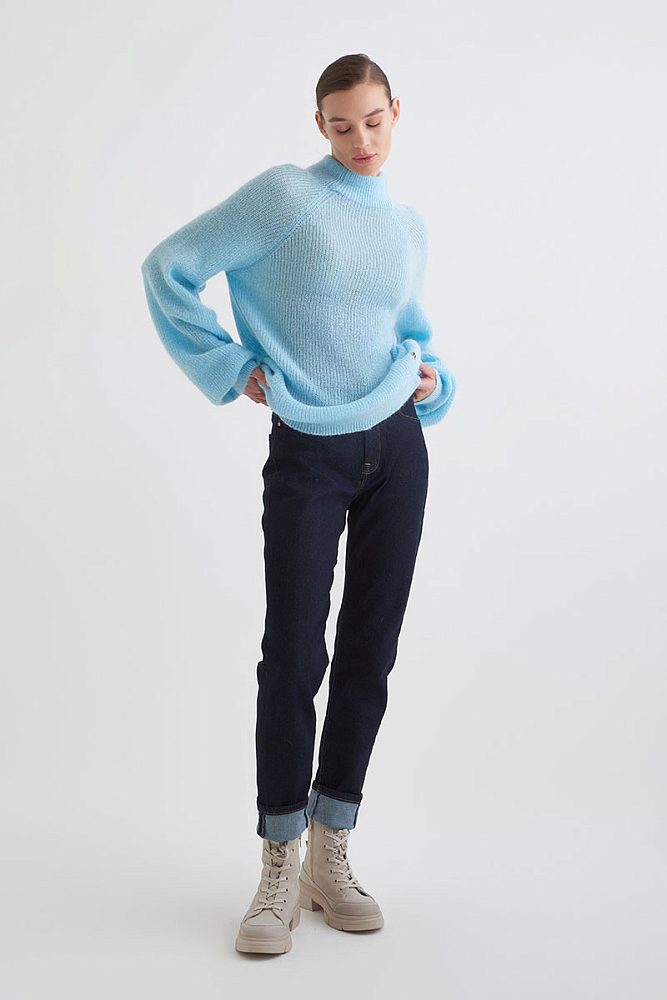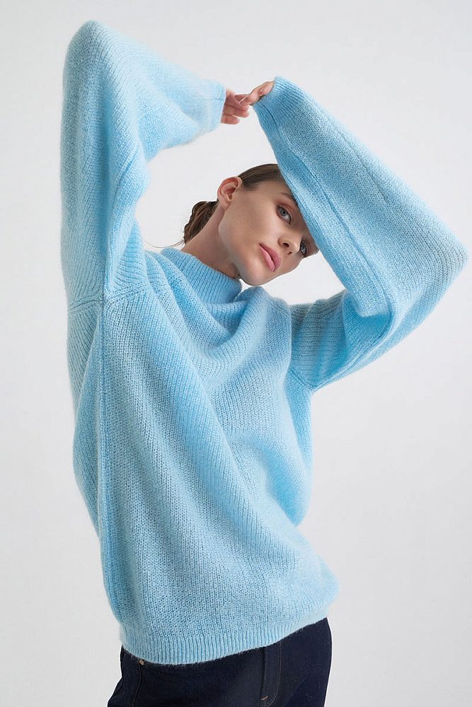Яркий пуловер свободного кроя, выполненный из фактурной мягкой шерсти, сделает ваш образ ярким и притягательным. Спущенная линия плеча и объемный рукав добавляют образу расслабленности, а нежная ткань подарит тепло и комфорт. Модель представлена в самых сочных трендовых оттенках: фуксия, мандариновый, нефритовый и небесно-голубой.