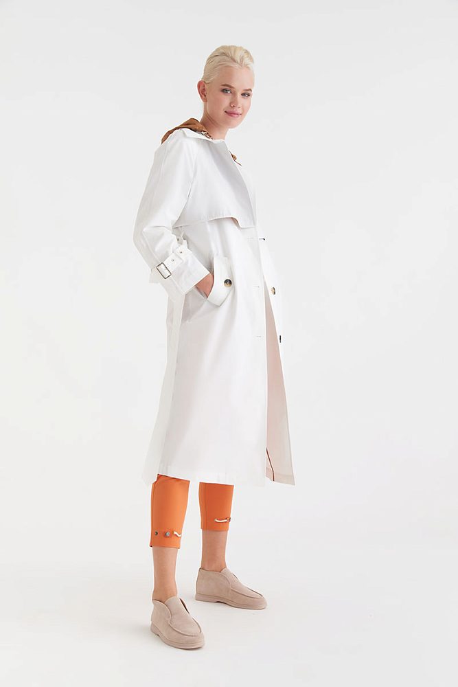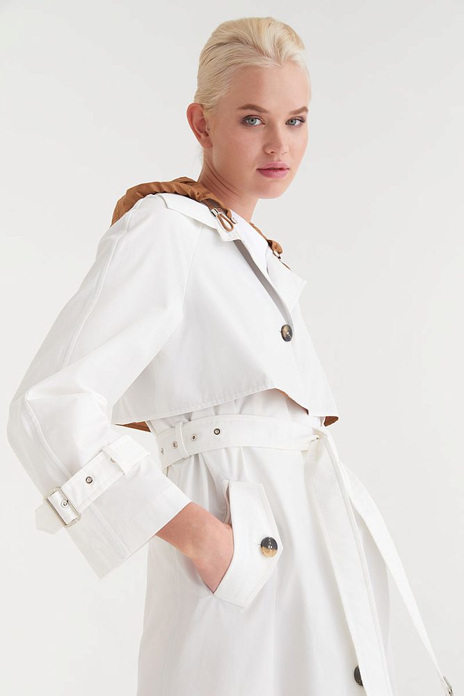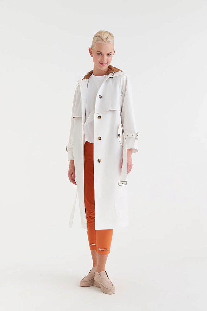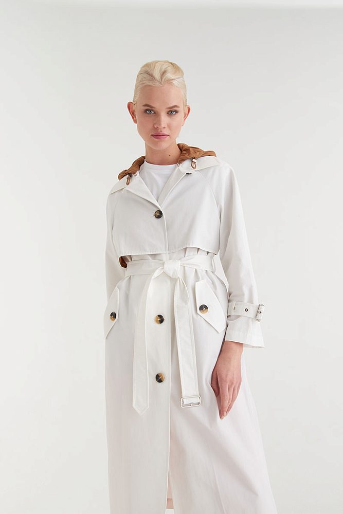 Модель на пуговицах с отлетной кокеткой и поясом — прекрасная основа весеннего гардероба. Тренч с капюшоном элегантен и в то же время функционален: в дождливую и ветреную погоду он подарит вам комфорт  и будет уместен как в бунтарских образах с джинсами и кроссовками, так и в сдержанных — с платьями и оксфордами .