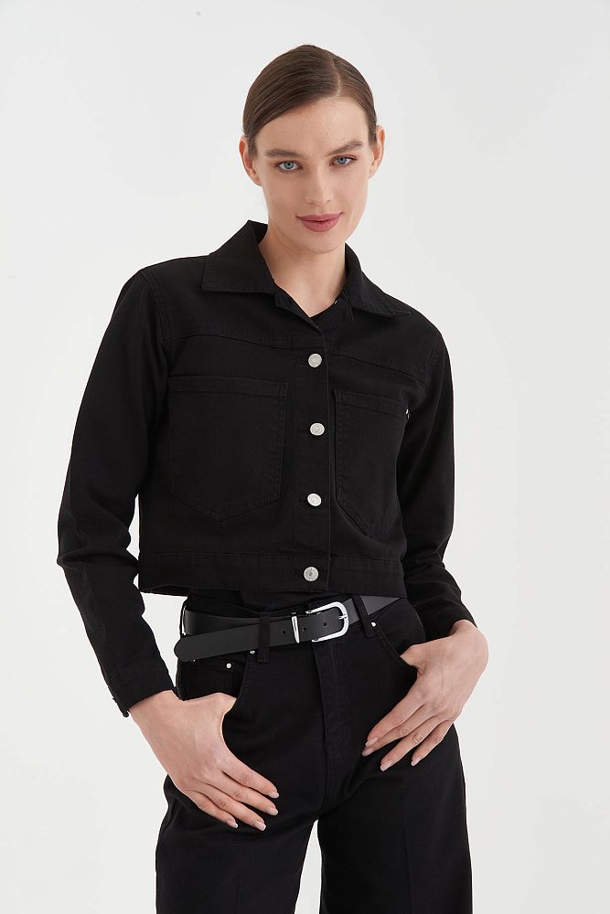Жакет из плотного хлопка с контрастными пуговицами и накладными карманами рисует линию талии и структурирует силуэт. Универсальная базовая модель на весну и прохладное лето. Яркий топ, строгая водолазка, романтичное платье — жакет выдерживает любое сочетание.